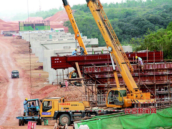 深茂鐵路全長265.7公里,開通后將成為連接珠三角與粵西地區(qū)最快捷的陸上通道。自去年開工建設(shè)以來,我市以“六個一”工作機制推進征地、遷墳、清表、修建施工便道等工作,實現(xiàn)了快速突破。同時在施工點設(shè)立警務(wù)室,保障良好的施工環(huán)境。目前,茂名段需征用土地4021.99畝,我市已交付使用土地3780.02畝,完成了征地進度94%;累計清表46.2公里,完成進度82%;累計修建施工便道43.64公里,完成進度77.7%。 其中 ,深茂鐵路中交三航局JMZQ-1標茂名段,已完成灌注樁568根,承臺44座,墩身9個,涵洞10個,路基長度3km,土方填筑20萬方。
