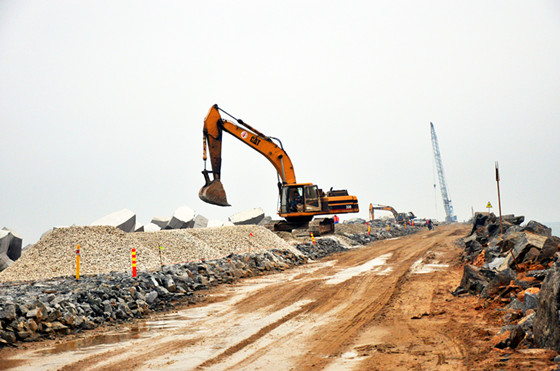 受全市矚目的茂名港博賀新港區(qū)核心起步工程—茂名港博賀新港區(qū)東、西防波堤工程,截至目前,東防波堤已完成推填長(zhǎng)度1650米,推填量達(dá)130萬(wàn)立方米;西防波堤已推填至360米,兩堤共累計(jì)完成3-30噸級(jí)扭王塊預(yù)制約1.3萬(wàn)件,工程建設(shè)快速推進(jìn)獲得了市委市政府的充分肯定。