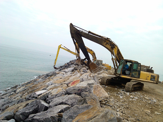東防波堤外坡護面塊石施工
