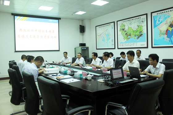 會上,劉乃英董事長對中信證券領(lǐng)導蒞臨表示熱烈歡迎,并詳細介紹了茂名港集團的發(fā)展概況、項目建設情況、融資計劃以及相關(guān)發(fā)展規(guī)劃。茂名市委常委、濱海新區(qū)黨工委書記趙廣輝指出,茂名具有良好的建港優(yōu)勢、歷史悠久的冼太文化,是集港口開發(fā)、工業(yè)開發(fā)、旅游開發(fā)為一體的宜居宜業(yè)的海韻綠城。他十分歡迎中信證券到新區(qū)來投資,并希望雙方積極探尋多樣性多領(lǐng)域的合作空間,攜手實現(xiàn)互利共贏。