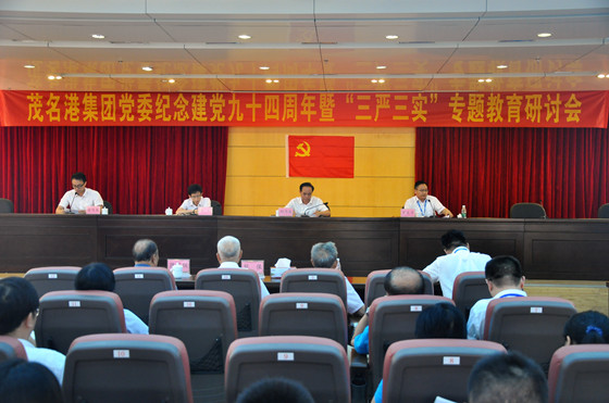 為紀(jì)念建黨94周年,并深入貫徹落實(shí)“三嚴(yán)三實(shí)”專題教育工作精神,6月29日,茂名港集團(tuán)在交通局三樓會(huì)議室隆重召開紀(jì)念建黨94周年暨“三嚴(yán)三實(shí)”專題教育研討會(huì)。會(huì)議由黨委委員梁兆基同志主持。黨委委員、集團(tuán)總裁羅大方同志作了專題黨課。黨委書記、集團(tuán)董事長劉乃英同志作了重要講話。