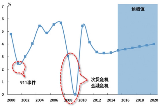 來源:中國遠(yuǎn)洋航務(wù) 預(yù)計“十三五”期間世界經(jīng)濟和貿(mào)易的增速分別為3.8%和4.7%,世界貿(mào)易相對經(jīng)濟的彈性系數(shù)由1.48降至1.25水平,海運需求增速也將相應(yīng)減緩!白叱鋈ァ卑l(fā)展將使我國海運需求由原來的放射結(jié)構(gòu),轉(zhuǎn)向全球網(wǎng)絡(luò)化結(jié)構(gòu);同時針對“走出去”面臨各種風(fēng)險,要求海運在應(yīng)對突發(fā)事件中更好地發(fā)揮支持保障作用。 世界經(jīng)貿(mào)發(fā)展環(huán)境變化 1. 全球經(jīng)貿(mào)增速放緩,區(qū)域和國家增長分化。 世界經(jīng)貿(mào)將保持低速穩(wěn)定,貿(mào)易彈性系數(shù)下降。圖1顯示了2000年以來世界經(jīng)濟增速的變化,可以看出,突發(fā)事件的影響相對短暫和局部,而經(jīng)濟發(fā)展自身問題影響長遠(yuǎn),波及范圍更加廣泛。受到9·11事件影響,2011年世界經(jīng)濟增速一度有所下滑,但很快恢復(fù),2000-2007年保持了年均4.4%的較快增長。同期,世界貿(mào)易年均增長6.5%,相對于經(jīng)濟增長的彈性系數(shù)為1.48。美國次貸危機、金融危機和歐洲債務(wù)危機是發(fā)達(dá)國家長期積累問題的集中暴露,對世界經(jīng)貿(mào)發(fā)展造成嚴(yán)重的沖擊,2008年、2009年世界經(jīng)濟和貿(mào)易出現(xiàn)嚴(yán)重下滑,2010年雖出現(xiàn)恢復(fù)性增長,但受歐債危機持續(xù)、各種貿(mào)易保護措施和地緣政治等多種復(fù)雜因素影響,當(dāng)前世界經(jīng)濟和貿(mào)易的增長面臨諸多不確定性,出現(xiàn)增速緩慢、穩(wěn)定的新態(tài)勢。從未來幾年發(fā)展看,根據(jù)IMF預(yù)測,未來世界經(jīng)貿(mào)速度將進(jìn)入低速但相對穩(wěn)定的狀態(tài),貿(mào)易增速下降更為明顯。預(yù)計“十三五”期間世界經(jīng)濟和貿(mào)易的增速分別為3.8%和4.7%,世界貿(mào)易相對經(jīng)濟的彈性系數(shù)由1.48降至1.25水平,海運需求增速也將相應(yīng)減緩。