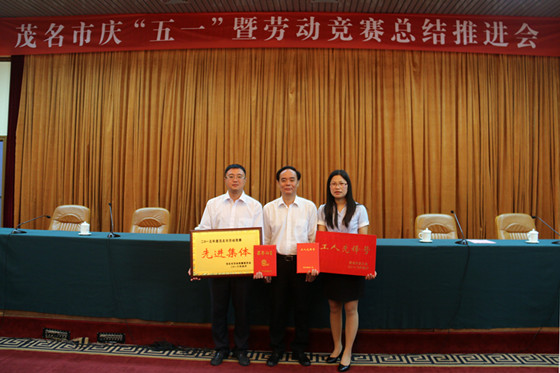 4月29日上午,茂名市隆重召開慶“五一”暨勞動競賽總結(jié)推進(jìn)會,對一批為國家、省、市經(jīng)濟(jì)社會建設(shè)做出突出貢獻(xiàn)的先進(jìn)個人和先進(jìn)集體進(jìn)行了表彰。茂名港集團(tuán)在2015年度勞動競賽中,全體職工頑強(qiáng)拼搏、奮勇爭先,超額完成市委市政府下達(dá)的任務(wù),以良好的業(yè)績和卓越的社會貢獻(xiàn),榮獲茂名市2015年度勞動競賽“先進(jìn)集體”稱號。集團(tuán)財務(wù)審計部榮獲2016年茂名市“工人先鋒號”稱號;茂名港開發(fā)建設(shè)有限公司副總經(jīng)理劉冬同志榮獲2015年度“勞動競賽先進(jìn)個人”稱號。集團(tuán)黨委書記、董事長劉乃英代表茂名港集團(tuán)參加大會并接受表彰。