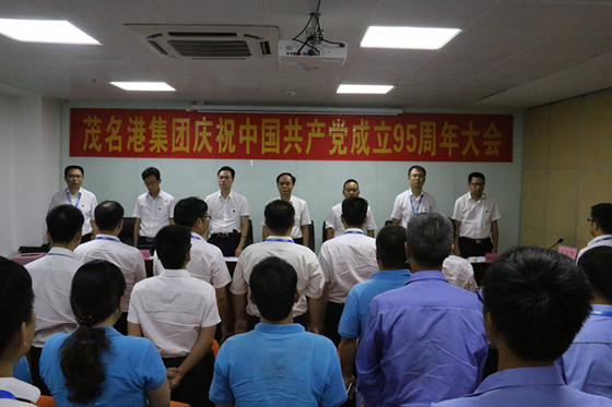 6月30日下午,茂名港集團(tuán)黨委在集團(tuán)五樓會(huì)議室召開慶祝中國共產(chǎn)黨成立95周年大會(huì),歡慶黨的光輝節(jié)日,謳歌黨的豐功偉績,堅(jiān)定集團(tuán)員工對(duì)黨的信念。大會(huì)對(duì)一批先進(jìn)基層黨組織、優(yōu)秀黨員、優(yōu)秀黨務(wù)工作者進(jìn)行了表彰,進(jìn)一步動(dòng)員廣大黨員干部職工解放思想,與時(shí)俱進(jìn),團(tuán)結(jié)拼搏,扎實(shí)工作,為集團(tuán)健康發(fā)展、全面完成今年各項(xiàng)任務(wù)而努力奮斗。集團(tuán)黨委書記、董事長劉乃英出席會(huì)議并作講話。集團(tuán)總裁羅大方宣讀《關(guān)于表彰“兩學(xué)一做”先進(jìn)基層黨組織、優(yōu)秀黨務(wù)工作者、優(yōu)秀共產(chǎn)黨員的決定》和《關(guān)于表彰“黨在我心中”主題征文大賽、“手抄黨章60天”優(yōu)秀作品獲獎(jiǎng)?wù)叩耐ㄖ。集團(tuán)黨委副書記肖炳璋主持會(huì)議。集團(tuán)副總裁戴飛、鐘珣、楊超燦,黨委委員黃遠(yuǎn)維,集團(tuán)機(jī)關(guān)全體人員,下屬企業(yè)班子成員、在崗全體黨員和入黨積極分子100余人參加了會(huì)議。