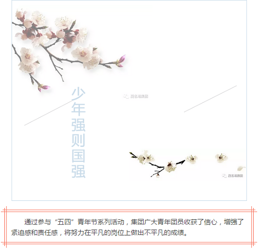 通過參與“五四”青年節(jié)系列活動,集團廣大青年團員收獲了信心,增強了緊迫感和責(zé)任感,將努力在平凡的崗位上做出不平凡的成績。 |