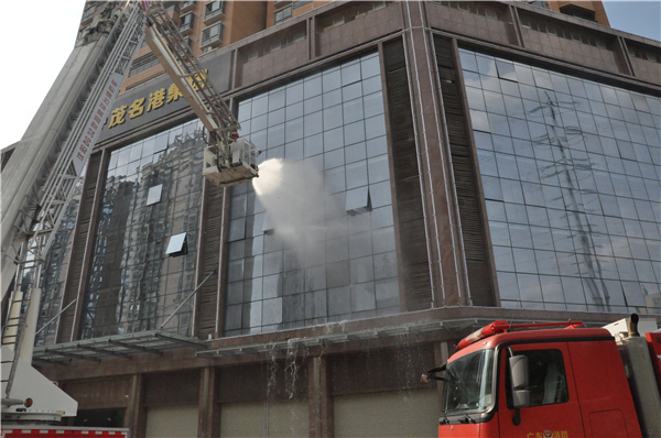 下午4時,火災應急演練正式開始。消防滅火組根據(jù)監(jiān)控提示奔向3樓火源處實施滅火,由于火勢較大,滅火組馬上撥打應急辦公室電話,同時向現(xiàn)場指揮楊超燦報告起火情況。應急辦公室緊急搖起火災警報,并啟動消防安全應急預案,后勤保障組引導員工迅速有序地撤場。與此同時,滅火組向河東消防中隊報火警,河東消防中隊到達現(xiàn)場后,部署滅火力量。僅用了10分鐘,“大火”被撲滅,人數(shù)齊全,無傷亡事故,演練完滿成功。