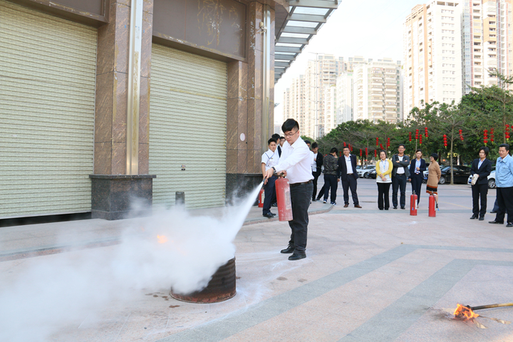 培訓(xùn)會上, 林教官結(jié)合近年來發(fā)生的火災(zāi)案例,通過視頻、圖片及文字的形式生動(dòng)地闡述了普及消防安全知識和提升消防意識的重要性。他詳細(xì)講解了電器、生活和車輛等三類高發(fā)火災(zāi)的特征、誘因撲救撲救等消防安全知識,并就如何使用滅火器材、火場時(shí)逃生方法及消防求救信號等進(jìn)行現(xiàn)場講解和操作示范。講解課結(jié)束之后, 受訓(xùn)員工在教官的指導(dǎo)下在集團(tuán)一樓進(jìn)行了滅火演練實(shí)操。