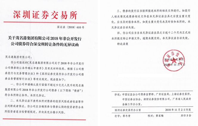 近日,茂名港集團融資工作又傳喜訊,深圳證券交易所正式批復(fù)茂名港集團獲準發(fā)行5億元非上市公司債,成為茂名首家獲批發(fā)行非上市公司債的企業(yè)。