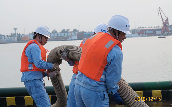 2號泊位的重啟,需要解決水深勘測、清淤、護舷安裝、管線安裝、通航論證等問題。在清淤、護舷安裝、管線安裝等施工方面,與生產作業(yè)交叉進行,1號泊位與2號泊位間距較近,并且1號泊位基本無空船期,這增加了施工與監(jiān)管的難度。在中油王港公司與集團各部門的通力協(xié)作下,自今年5月份起,統(tǒng)籌安排,精細化管理生產與施工作業(yè)環(huán)節(jié)下,攻堅克難、嚴格把關,保障生產作業(yè)與施工作業(yè)安全有序地運行,確保了安全施工與生產兩不誤。