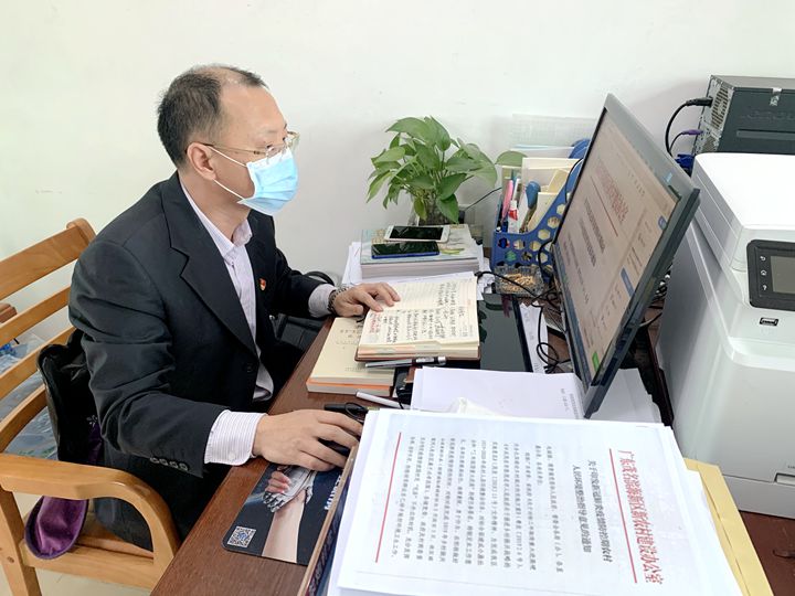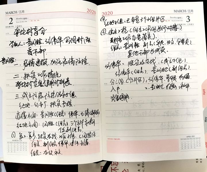 根據(jù)當(dāng)?shù)卮迕穸嗄陙?lái)下地勞作的習(xí)慣,他把田間地頭作為了防疫宣傳工作的重點(diǎn)場(chǎng)所。拎著小喇叭,奔走在田埂地頭的他,除了主動(dòng)向村民宣傳出入佩戴口罩、減少聚集、不走村訪(fǎng)友等防疫要求外,還積極向村民宣講疫情最新消息,引導(dǎo)村民堅(jiān)定信心、科學(xué)防控,做到不造謠、不信謠、不傳謠。 全村1412戶(hù)村民,他配合村委深入排查每一名村民的動(dòng)向及身體狀況,從外地回來(lái)人員返鄉(xiāng)前14天的去向更是核查重點(diǎn),他都詳細(xì)詢(xún)問(wèn)并協(xié)助登記造冊(cè)。由于電腦操作不夠便捷,他便夾雜了一些手寫(xiě)的臺(tái)賬資料,便于走村穿戶(hù)時(shí)仍能及時(shí)整理出村里人員健康動(dòng)態(tài)信息并按時(shí)向上級(jí)部門(mén)報(bào)送。特別是在架炮村發(fā)現(xiàn)一名廣州返鄉(xiāng)人員與新冠肺炎確診患者有密切接觸史后,他迅速指導(dǎo)開(kāi)展落實(shí)居家隔離措施,并每天上門(mén)跟蹤該返鄉(xiāng)人員的體溫及身體狀況,直至其解除隔離,他才大大的松了一口氣。