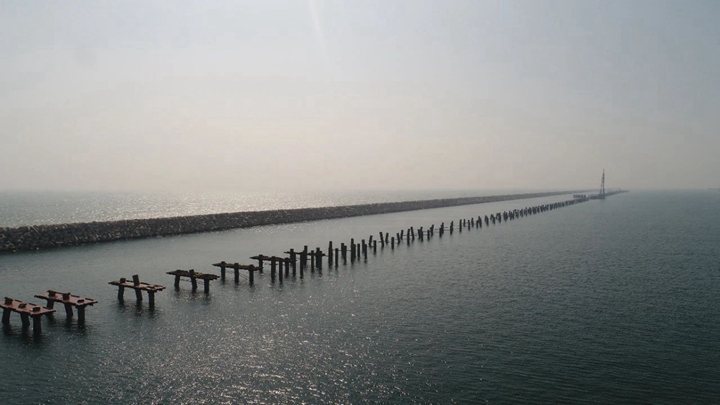 鳥瞰茂名港務(wù)中心施工現(xiàn)場