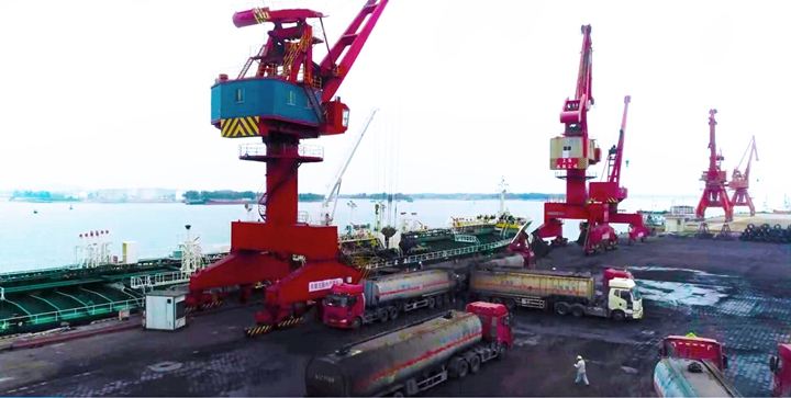 2021年元月,集團下屬中油王港公司、港口經營公司作業(yè)區(qū)內裝載車輛穿梭如流、門吊裝卸不停,一派繁忙景象。