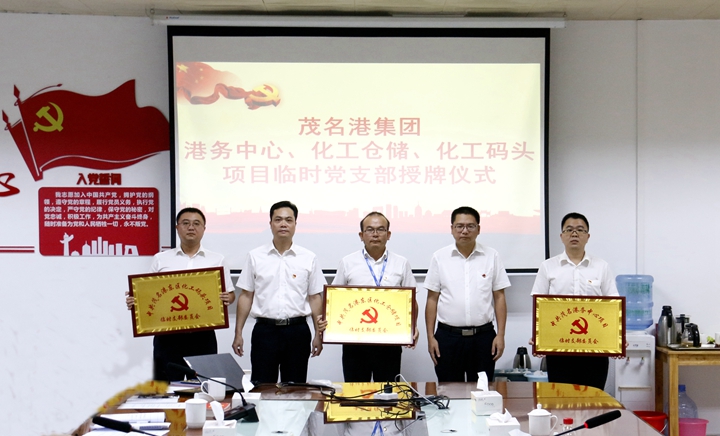 5月12日下午,在博賀新港區(qū)項目會議室,茂名港集團組織舉行了簡單而莊嚴的項目臨時黨支部授牌儀式,為茂名港務中心、東區(qū)化工碼頭和東區(qū)化工倉儲三個項目臨時黨支部授予牌匾。集團黨委副書記、工會主席肖炳璋,集團黨委委員、副總裁楊超燦,黨群工作部、項目部黨員代表和施工單位及監(jiān)理單位代表共40多人參加了授牌儀式。