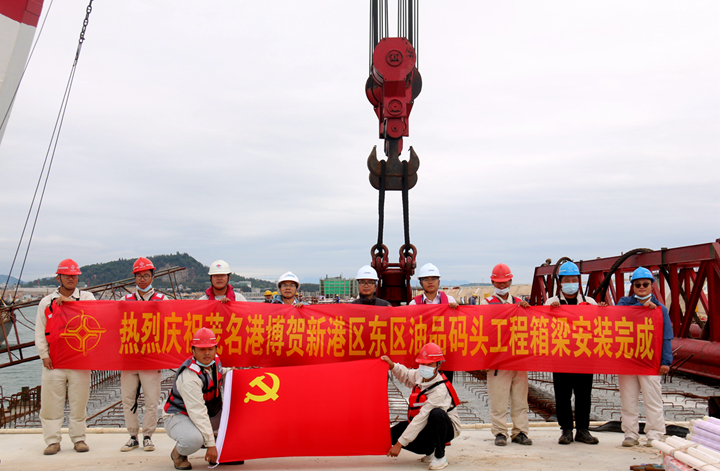 茂名港博賀新港區(qū)東區(qū)油品碼頭工程順利完成全部箱梁安裝