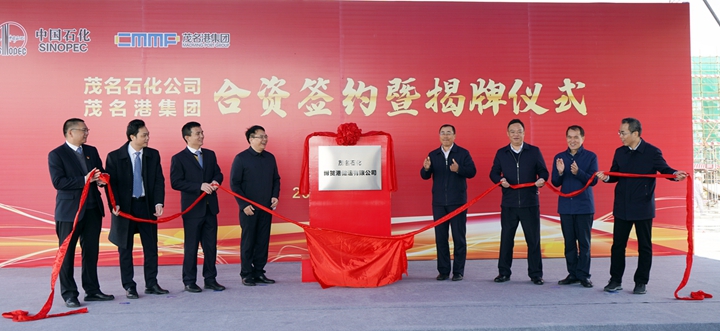 揭牌儀式 在與會(huì)人員的共同見(jiàn)證下,毛遠(yuǎn)洪與肖炳璋分別代表茂名石化公司、茂名港集團(tuán)簽訂了茂名石化博賀港儲(chǔ)運(yùn)有限公司合資合同。與會(huì)領(lǐng)導(dǎo)及雙方代表共同為茂名石化博賀港儲(chǔ)運(yùn)有限公司進(jìn)行了揭牌儀式。(何夢(mèng)娉) |