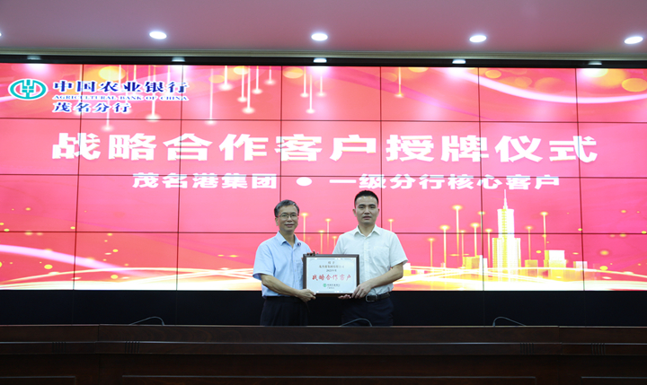 近日,茂名港集團成為中國農(nóng)業(yè)銀行“廣東省分行戰(zhàn)略合作客戶”,同時被認定為“一級分行級核心客戶”,是茂名市第一家得此殊榮的企業(yè)。此次授牌,是雙方多年緊密合作、互相支持的見證,體現(xiàn)了良好的互信關系,更標志著雙方合作將進入嶄新的階段。
