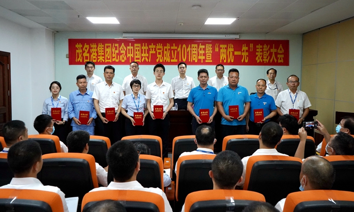 6月29日下午,茂名港集團(tuán)召開(kāi)紀(jì)念中國(guó)共產(chǎn)黨成立101周年暨“兩優(yōu)一先”表彰大會(huì)。會(huì)議回顧了中國(guó)共產(chǎn)黨建黨101年來(lái)的光輝歷程,表彰了集團(tuán)過(guò)去一年涌現(xiàn)出的優(yōu)秀共產(chǎn)黨員、優(yōu)秀黨務(wù)工作者、先進(jìn)黨支部,動(dòng)員集團(tuán)各級(jí)黨組織和全體黨員干部銘記歷史、發(fā)揚(yáng)傳統(tǒng),不忘初心、勵(lì)志前行,以實(shí)際行動(dòng)迎接黨的二十大勝利召開(kāi)。受集團(tuán)黨委書(shū)記、董事長(zhǎng)王志華委托,集團(tuán)黨委副書(shū)記、總裁肖炳璋出席會(huì)議并講話,黨委委員、副總裁楊超燦主持會(huì)議,黨委委員、紀(jì)委書(shū)記、監(jiān)察專員陳軍,黨委委員、總工程師蔡光章,副總裁朱廣宇出席會(huì)議。