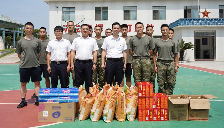 7月30日,根據(jù)集團(tuán)黨委工作部署,集團(tuán)黨委副書記、總裁肖炳璋率隊(duì)到蓮頭嶺某部開(kāi)展“八一”建軍節(jié)擁軍慰問(wèn)活動(dòng),向部隊(duì)官兵致以節(jié)日的祝福和誠(chéng)摯的問(wèn)候。 慰問(wèn)中,肖炳璋與官兵們親切交談,詳細(xì)詢問(wèn)了官兵的日常生活、學(xué)習(xí)和執(zhí)勤訓(xùn)練情況,對(duì)他們?yōu)槊?jīng)濟(jì)社會(huì)發(fā)展作出的重大貢獻(xiàn)表示衷心感謝和崇高敬意。他表示,茂名港集團(tuán)的快速發(fā)展,離不開(kāi)駐地部隊(duì)的有力支持。集團(tuán)將一如既往地關(guān)心和支持軍隊(duì)建設(shè),用心用情用力做好擁軍優(yōu)屬工作。他希望,雙方不斷加強(qiáng)溝通交流,推動(dòng)軍民融合深度發(fā)展,打造和諧穩(wěn)定的優(yōu)良港口營(yíng)商環(huán)境,攜手共同應(yīng)對(duì)當(dāng)前復(fù)雜的經(jīng)濟(jì)形勢(shì)和多重困難挑戰(zhàn),共同譜寫新時(shí)代雙擁工作新篇章。