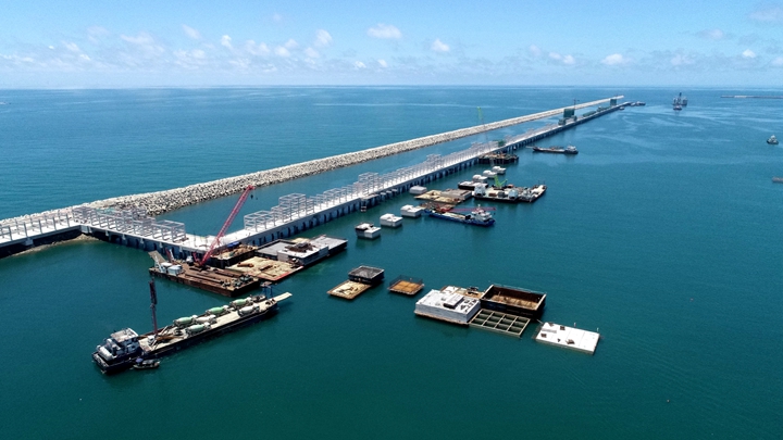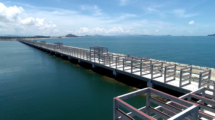 ▲茂名港務(wù)中心項(xiàng)目 在這乘風(fēng)破浪、跨越發(fā)展的十年里,茂名港深水大港崢嶸初現(xiàn),碩果累累——實(shí)現(xiàn)資產(chǎn)規(guī)模和融資規(guī)!半p百”目標(biāo),為濱海新區(qū)基礎(chǔ)設(shè)施建設(shè)和茂名港集團(tuán)發(fā)展提供資金保障,融資平臺(tái)作用凸顯;自建、參建省市重點(diǎn)項(xiàng)目超30個(gè),推動(dòng)博賀新港區(qū)東西防波堤、10萬噸級(jí)成品油碼頭、東區(qū)化工碼頭、東區(qū)化工倉(cāng)儲(chǔ)、粵西LNG造陸項(xiàng)目、茂名港務(wù)中心、博賀灣大橋、供水工程等一批省市重點(diǎn)項(xiàng)目建設(shè)投用,充分發(fā)揮濱海新區(qū)項(xiàng)目建設(shè)主體作用,加快推進(jìn)口岸開放工作,為茂名經(jīng)濟(jì)實(shí)現(xiàn)高質(zhì)量發(fā)展增添動(dòng)力。 前瞻布局,打造南海能源新通道,積極融入茂名“向海而興”發(fā)展大局。