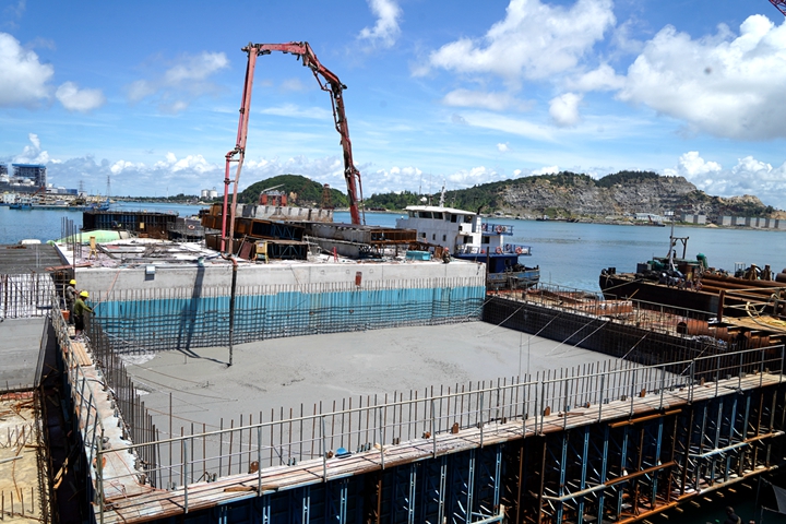 ▲東區(qū)化工碼頭項(xiàng)目胸墻澆筑作業(yè) 集團(tuán)當(dāng)前在建的10萬噸級(jí)成品油碼頭、東區(qū)化工碼頭等碼頭泊位建設(shè)進(jìn)入沖刺階段,認(rèn)真貫徹市委市政府關(guān)于加快口岸開放工作的要求,計(jì)劃今年竣工驗(yàn)收;茂名港務(wù)中心已完成主體結(jié)構(gòu)施工,計(jì)劃今年建成投用,將為濱海新區(qū)樹立嶄新地標(biāo);30萬噸級(jí)原油碼頭報(bào)批報(bào)建工作取得重大突破,項(xiàng)目岸線申請(qǐng)獲得國(guó)家交通運(yùn)輸部批復(fù),前期工作不斷加快推進(jìn),即將進(jìn)入實(shí)質(zhì)性實(shí)施階段,現(xiàn)代化深水大港的畫卷徐徐展開。 挖潛增效,劃轉(zhuǎn)老國(guó)企扭虧為盈,實(shí)現(xiàn)國(guó)有資產(chǎn)保值增值。