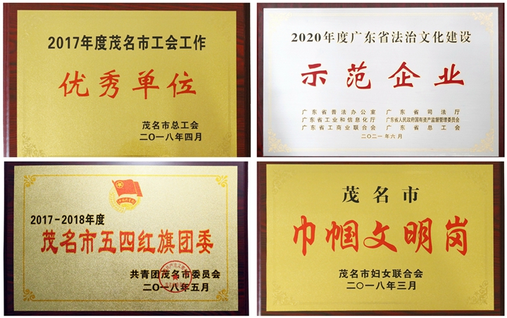 ▲集團(tuán)榮譽(yù)獎(jiǎng)牌(摘選) 幾年來,集團(tuán)工會(huì)榮獲“茂名市工會(huì)工作優(yōu)秀單位”稱號(hào),集團(tuán)財(cái)務(wù)部女職工榮獲“茂名市巾幗文明崗”稱號(hào);集團(tuán)團(tuán)委成立青年志愿者服務(wù)隊(duì),助力雙創(chuàng)工作,連續(xù)三年榮獲“茂名市五四紅旗團(tuán)委”稱號(hào)。集團(tuán)憑借系列企業(yè)文化建設(shè)成果,先后榮獲 “中國(guó)企業(yè)文化建設(shè)典范企業(yè)”“廣東省先進(jìn)集體”“廣東省優(yōu)秀企業(yè)”“廣東省企業(yè)文化建設(shè)最佳實(shí)踐單位”“廣東省法治文化建設(shè)示范企業(yè)”等榮譽(yù),被譽(yù)為茂名市屬國(guó)有企業(yè)的標(biāo)桿與典范。 結(jié)語 十年積跬步,足下至千里;仨甑姆欠舱鞒蹋廴耸钢酒D苦奮斗,勇于擔(dān)當(dāng)作為,爭(zhēng)當(dāng)茂名向海而興排頭兵,在茂名經(jīng)濟(jì)發(fā)展史上留下堅(jiān)實(shí)的足印。