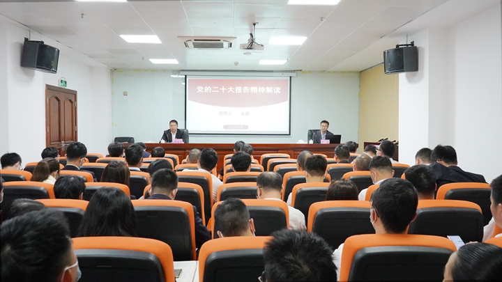 為深入學(xué)習(xí)宣傳貫徹黨的二十大精神,持續(xù)掀起學(xué)習(xí)熱潮,3月15日,茂名港集團(tuán)舉辦黨的二十大精神宣講報告會,邀請廣東石油化工學(xué)院馬克思主義學(xué)院博士、講師金鵬作專題宣講。集團(tuán)黨委書記、董事長王志華,集團(tuán)黨委委員、副總裁楊超燦,集團(tuán)黨委委員、紀(jì)委書記、監(jiān)察專員陳軍,集團(tuán)總裁助理李昱祺出席宣講會,集團(tuán)各黨支部委員和機(jī)關(guān)全體職工約70人參加宣講會。