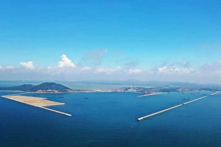 從灘涂到深水港,從藍(lán)圖到實景圖。路選對了,就不怕遙遠(yuǎn)。 2013年,隨著東閣嶺第一炮的炸響,東西兩條防波堤像巨臂一樣向海中延伸,圈出了茂名港人億噸大港的夢想。這一路,從零到有,從卡脖子到攻堅突圍,再到不斷刷新成績,一路艱難險阻,卻又步履堅定。“ 挺難的,從一無所有中起步,大家都是咬著牙砥礪向前的!绷鹤驷摶貞泟?cè)肼殨r在港區(qū)看到的畫面,退潮時都是灘涂爛泥,漲潮時便是一片淺海,要把漁民拉上腰的護(hù)服穿在身上才港下地勘測,以免一漲潮就成了“落湯雞”。在防波堤項目建設(shè)的過程中,梁祖釗發(fā)現(xiàn)港區(qū)起步施工基礎(chǔ)差,東閣嶺開山爆破難度大、所需拋石量巨大、工期緊實施人員少等種種困難,基本沒有可參考借鑒的港口建設(shè)管理經(jīng)驗。實施人員少,那就一崗多責(zé),一個人分擔(dān)多個角色輪回轉(zhuǎn)軸;沒經(jīng)驗,那就摸著石頭過河,參考國家港口工程建設(shè)管理規(guī)定,一項一項按照最高要求制定施工計劃,系統(tǒng)部署、優(yōu)化調(diào)度東西防波堤各種有利資源,最大限度增加?xùn)|西防波堤的作業(yè)面和水拋力度,使防波堤日均水拋量從8000立方米提升至16000立方米,大大加快了施工進(jìn)展。他深耕項目建設(shè)一線,在集團(tuán)黨委的帶領(lǐng)下全過程參與完成項目設(shè)計方案審核、招投標(biāo)、合同談判、施工建設(shè)、交工驗收等工作。終于,在2018年7月,外圍全長5423米東防波堤和全長3315米的西防波堤順利交工驗收,兩堤如同巨臂環(huán)繞形成環(huán)抱式港池面積6平方公里,為茂名實現(xiàn)“億噸大港夢”奠定了堅實的基礎(chǔ),有力地助推茂名經(jīng)濟(jì)高質(zhì)量發(fā)展。