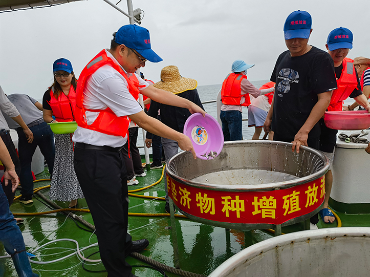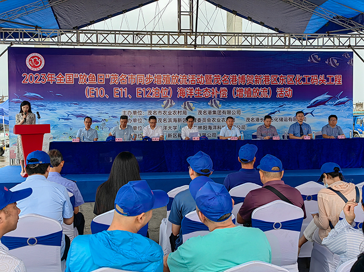 6月6日,茂名市農業(yè)農村局與茂名港集團聯(lián)合在茂名市放雞島人工魚礁區(qū)開展2023年全國 “放魚日” 茂名市同步增殖放流活動暨茂名港博賀新港區(qū)東區(qū)化工碼頭工程海洋生態(tài)補償(增殖放流)活動。廣東茂名濱海新區(qū)黨工委副書記黃永,茂名市農業(yè)農村局副局長鐘秀威,茂名市自然資源局三級調研員羅進鑫,茂名市人民檢察院第四檢察部主任仲江,茂名市生態(tài)環(huán)境局自然生態(tài)保護科科長朱國慶,茂名港集團黨委委員、副總裁楊超燦及有關單位約百余人參加了活動。