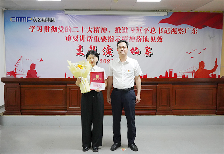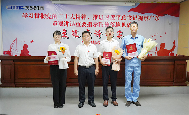 6月27日,茂名港集團(tuán)舉行“學(xué)習(xí)貫徹黨的二十大精神,推進(jìn)習(xí)近平總書記視察廣東重要講話重要指示精神落地見效”主題演講比賽決賽。集團(tuán)黨委副書記、總裁肖炳璋,副總裁李昱祺出席活動,并為獲獎選手頒發(fā)了榮譽(yù)證書。