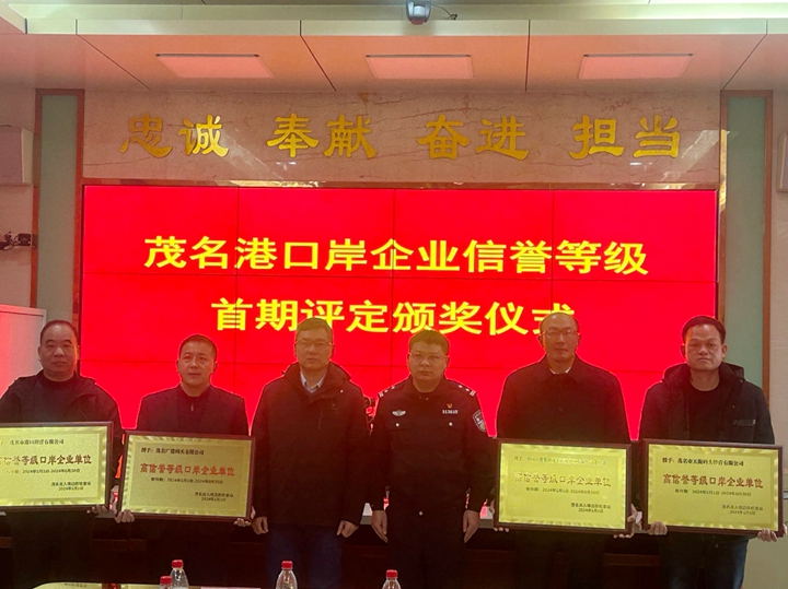 1月25日,口岸企業(yè)信譽等級評定暨口岸安全管控工作座談會在茂名出入境邊防檢查站隆重召開,集團下屬企業(yè)茂名市港口經(jīng)營有限公司榮獲茂名出入境邊防檢查站首批“高信譽等級口岸企業(yè)單位”!會上,茂名出入境邊防檢查站、茂名市商務(wù)局及茂名市各口岸企業(yè)一起共謀口岸經(jīng)濟發(fā)展之路,共商口岸安全管控之計,并對茂名港口岸范圍評選出的首批四家高信譽等級口岸企業(yè)進行了表彰。