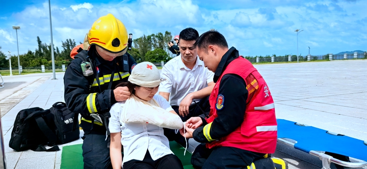 濱海物業(yè)公司聯(lián)合茂名石化北山嶺消防中隊開展撲滅火災(zāi)及人員疏散演練,處置正確,迅速有效,演練后消防員進行心肺復(fù)蘇急救知識宣講實踐,有效提高員工應(yīng)急技能