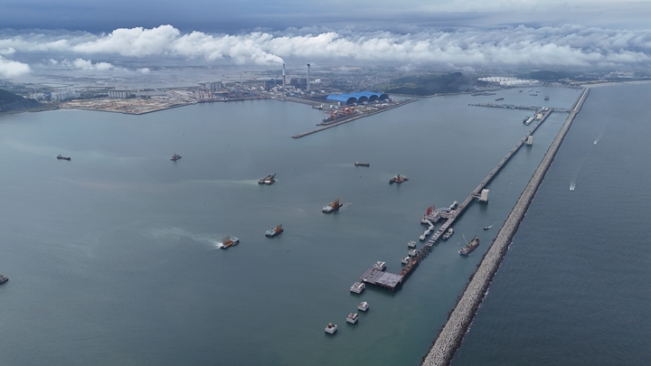 據(jù)悉,30萬噸級原油碼頭設計年吞吐量達1600萬噸,泊位長度達404米,碼頭共設計有145根樁基,由工作平臺及工作樓平臺的70根樁基和附屬管廊橋工程的75根樁基組成,其中工作平臺及工作樓平臺的70根樁基已于2023年底全部完工。