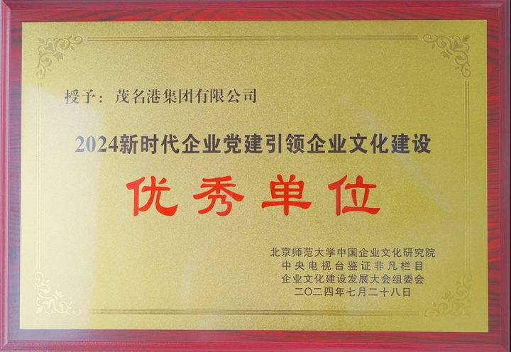 會上,茂名港集團(tuán)獲得“2024新時(shí)代企業(yè)黨建引領(lǐng)企業(yè)文化建設(shè)優(yōu)秀單位”,集團(tuán)黨委書記、董事長王志華榮獲“2024新時(shí)代企業(yè)黨建引領(lǐng)企業(yè)文化建設(shè)先進(jìn)個(gè)人”稱號。