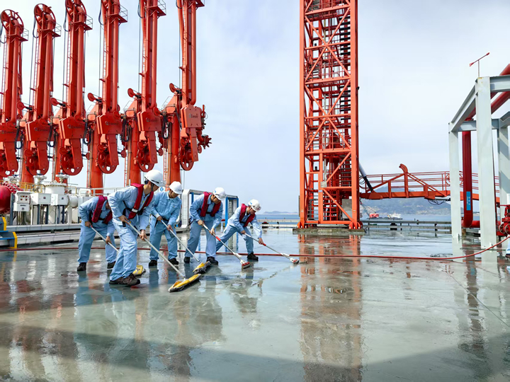 隱患排查小組深入碼頭各個(gè)角落,對(duì)設(shè)備設(shè)施進(jìn)行“地毯式”檢查。他們仔細(xì)查看輸油臂、凸輪泵以及消防設(shè)施等,不放過任何細(xì)微之處。團(tuán)員青年們憑借扎實(shí)專業(yè)知識(shí),敏銳發(fā)現(xiàn)潛在安全隱患,并及時(shí)記錄匯報(bào),為碼頭安全運(yùn)營筑牢防線;衛(wèi)生清潔小組分工明確,有序清理碼頭垃圾與雜物。有的青年負(fù)責(zé)沖洗地面,有的用拖把掃把進(jìn)行清潔。大家齊心協(xié)力,不怕臟累,經(jīng)過努力,碼頭環(huán)境煥然一新,為新春增添了一份整潔與清新。