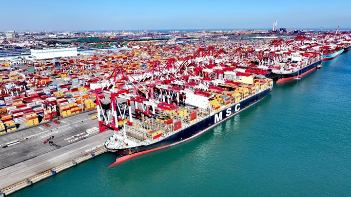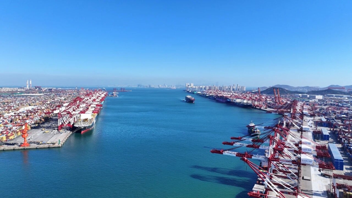 在建成全國首座全國產(chǎn)全自主自動化碼頭基礎(chǔ)上,青島港加速智慧港口迭代升級,推動人工智能應(yīng)用中試基地成果轉(zhuǎn)化。今年以來,持續(xù)優(yōu)化、推廣自主研發(fā)的A-TOS(碼頭智能管控系統(tǒng)),13次刷新自動化碼頭裝卸效率世界紀錄;推進傳統(tǒng)碼頭自動化改造,通過研發(fā)碼頭智能體、攻關(guān)自動化裝卸關(guān)鍵技術(shù),實現(xiàn)全場景、全流程、全機種自動化,助力集裝箱、紙漿、鐵礦石、糧食等貨種接連打破效率紀錄;打造“云港通”口岸線上服務(wù)平臺,實現(xiàn)“關(guān)港通”智慧查驗,應(yīng)用全球首個港口服務(wù)大模型方舟TaaS,進一步提升了裝卸作業(yè)的服務(wù)體驗和決策效率。 智慧港口效率的提升離不開海關(guān)監(jiān)管服務(wù)的升級保障。青島海關(guān)充分發(fā)揮山東港口青島港在‘一帶一路’中的陸;ヂ(lián)優(yōu)勢,推廣“先期機檢”“抵港直裝”“船邊直提”等自動化作業(yè)模式,通過升級升級智能空軌、集裝箱順勢核重等智能化設(shè)施設(shè)備,將海關(guān)監(jiān)管無縫嵌入港口生產(chǎn)作業(yè),實現(xiàn)了海關(guān)與港口物流信息交互,為外貿(mào)企業(yè)打造了一條綠色、高效的出海物流通道。