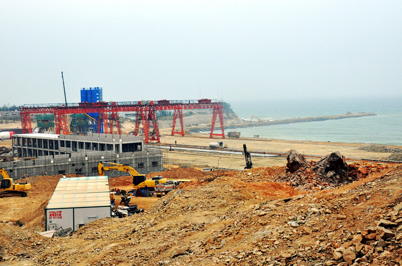 備受茂名人民關注的茂名港博賀新港區(qū)東、西防波堤工程在市委市政府的高度重視以及各部門的大力支持下,項目于去年12月16日正式動工建設,截至2月底,東防波堤已完成堤心石拋填4.8萬m3和完成規(guī)格石拋填5000m3,形成堤長280m。大型臨時工程扭王塊預制場的回填、兩臺門機以及兩臺攪拌站安裝亦已經完成,施工方正抓緊建設門機軌道、余下的兩臺門機以及其他輔助設施。