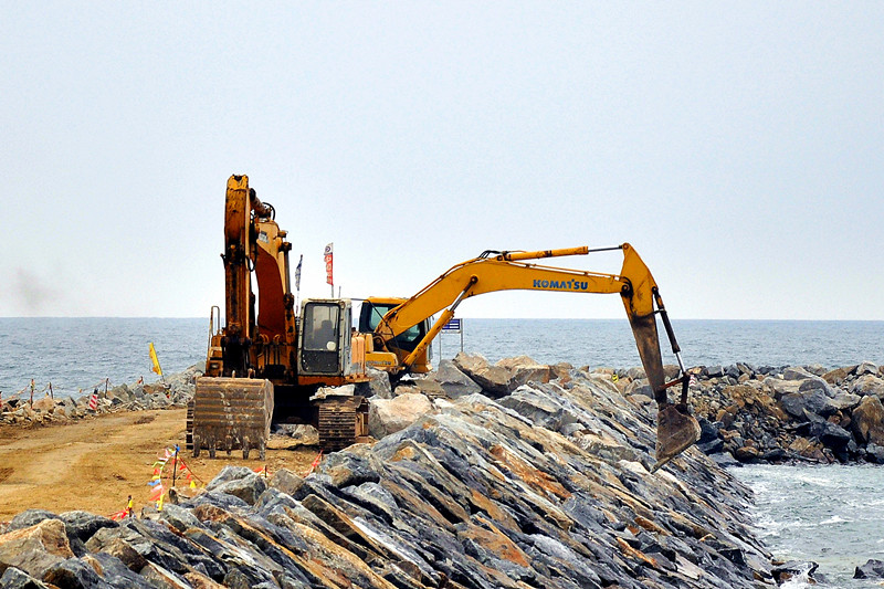 目前,博賀灣大道工程完成主線軟基換填1220米,完成主線復(fù)合地基500米合水泥攪拌樁29000根,完成一側(cè)便道2500米,兩側(cè)圍堰5000米;橋梁工程的制梁場正在規(guī)劃中;排水工程鋪設(shè)完成污水管、雨水管各1200米。博賀新港區(qū)防波堤工程東防波堤累計(jì)完成堤心石推填量10萬m3,推填長度近600m;粵電煤炭碼頭防波堤正進(jìn)行石料拋填是施工,已推進(jìn)1200多米;取水口箱涵基槽開挖工作已完成;3.5萬噸碼頭基槽拋石1740m3;煤炭堆場正在推填。粵電博賀發(fā)電廠項(xiàng)目基樁工程已基本完成,鍋爐鋼結(jié)構(gòu)已開始安裝,計(jì)劃于2015年底投產(chǎn)。