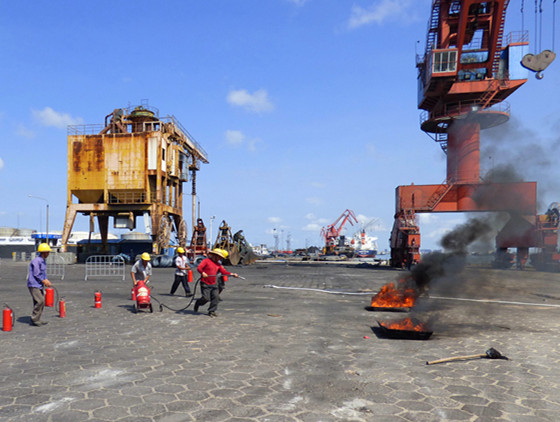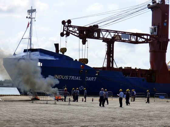 根據(jù)公司年度安全演練計(jì)劃,并結(jié)合“安全生產(chǎn)月”的開(kāi)展,港口經(jīng)營(yíng)公司于6月27日在萬(wàn)噸級(jí)碼頭作業(yè)區(qū)、應(yīng)急通道以及港區(qū)大門(mén)進(jìn)行了港口設(shè)施火災(zāi)以及危險(xiǎn)貨物事故應(yīng)急演練,進(jìn)一步檢驗(yàn)并提高了安保人員的應(yīng)急處置能力。